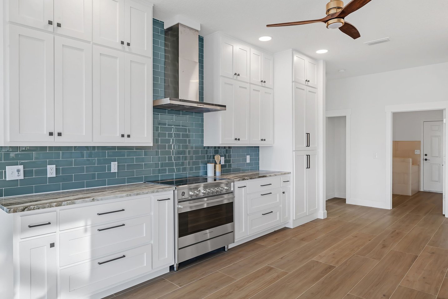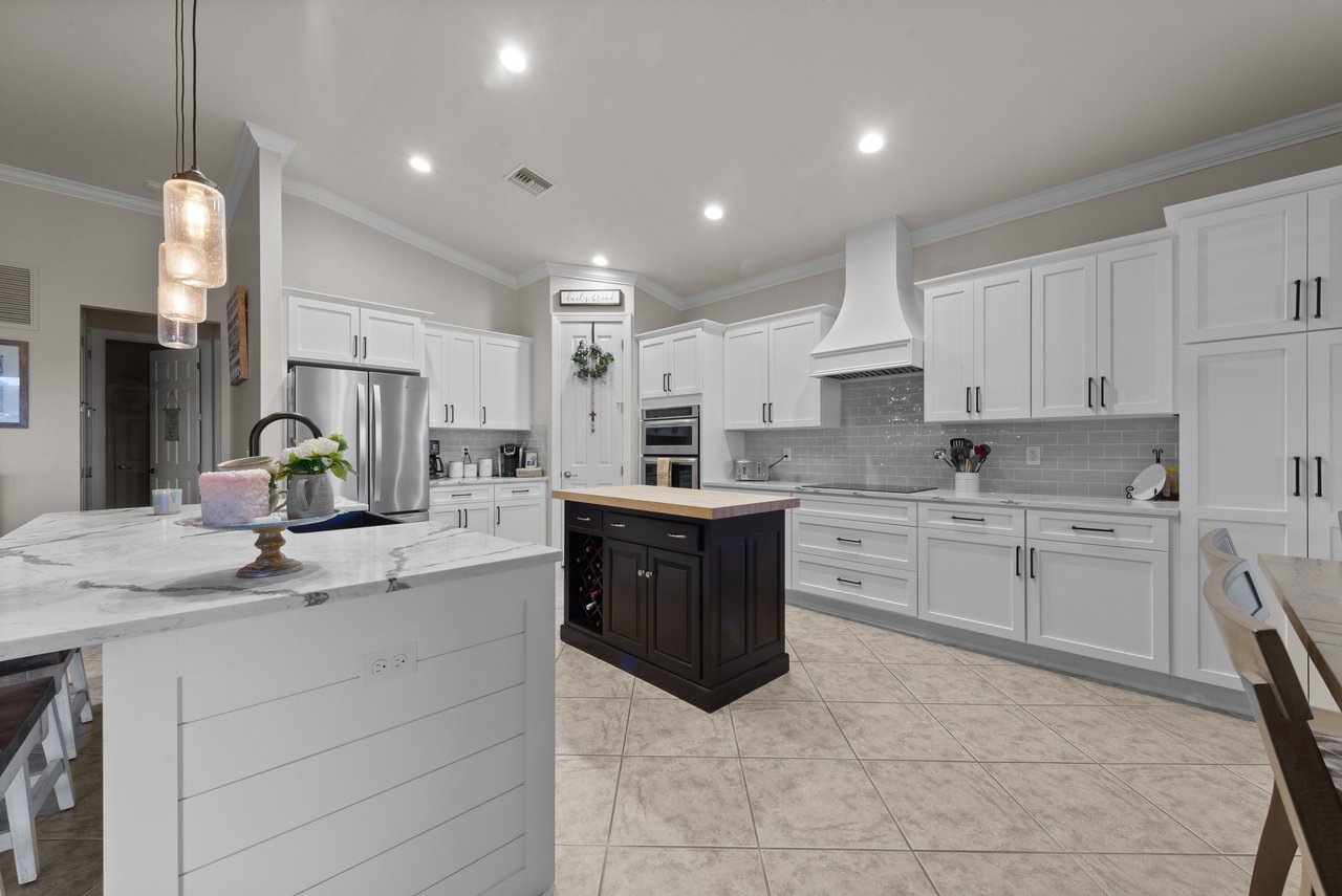 Transforming your kitchen doesn't always require a complete overhaul. With our specialized services, you can breathe new life into your space simply by updating the doors! Our recent project showcases the remarkable transformation achievable through strategic enhancements: we replaced all the kitchen doors, installed a new vent hood, wrapped the island in shiplap, finished the cabinetry in a creamy white, upgraded to a modern backsplash, and installed stunning new countertops, sink and fixtures.